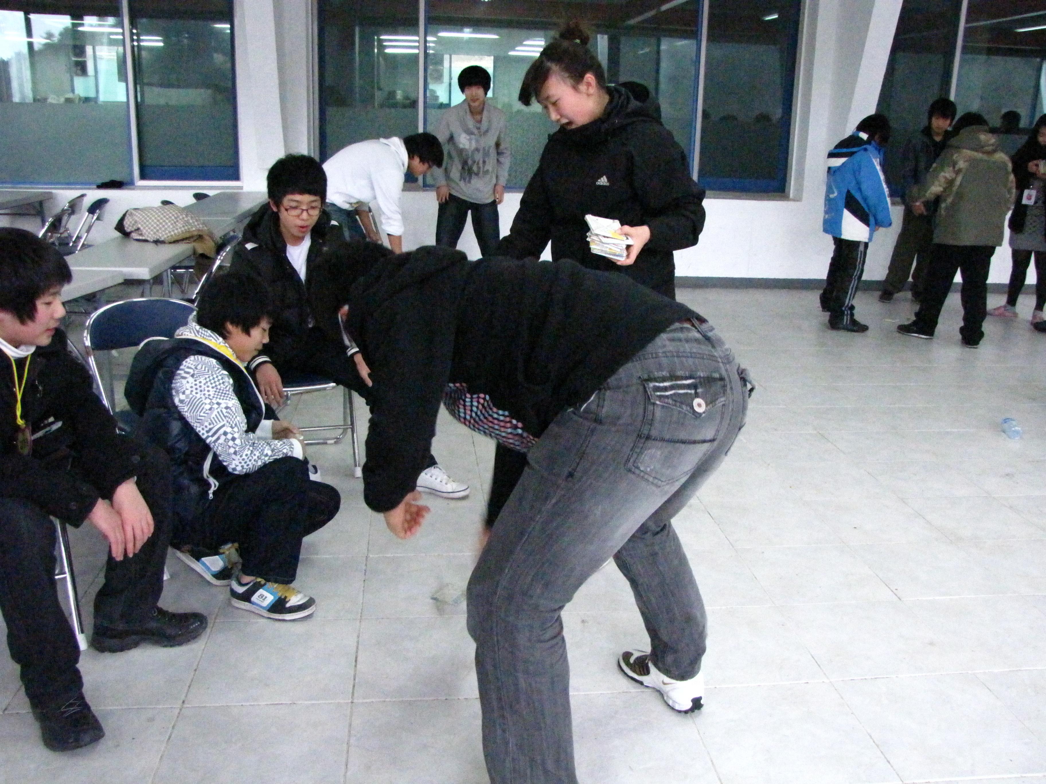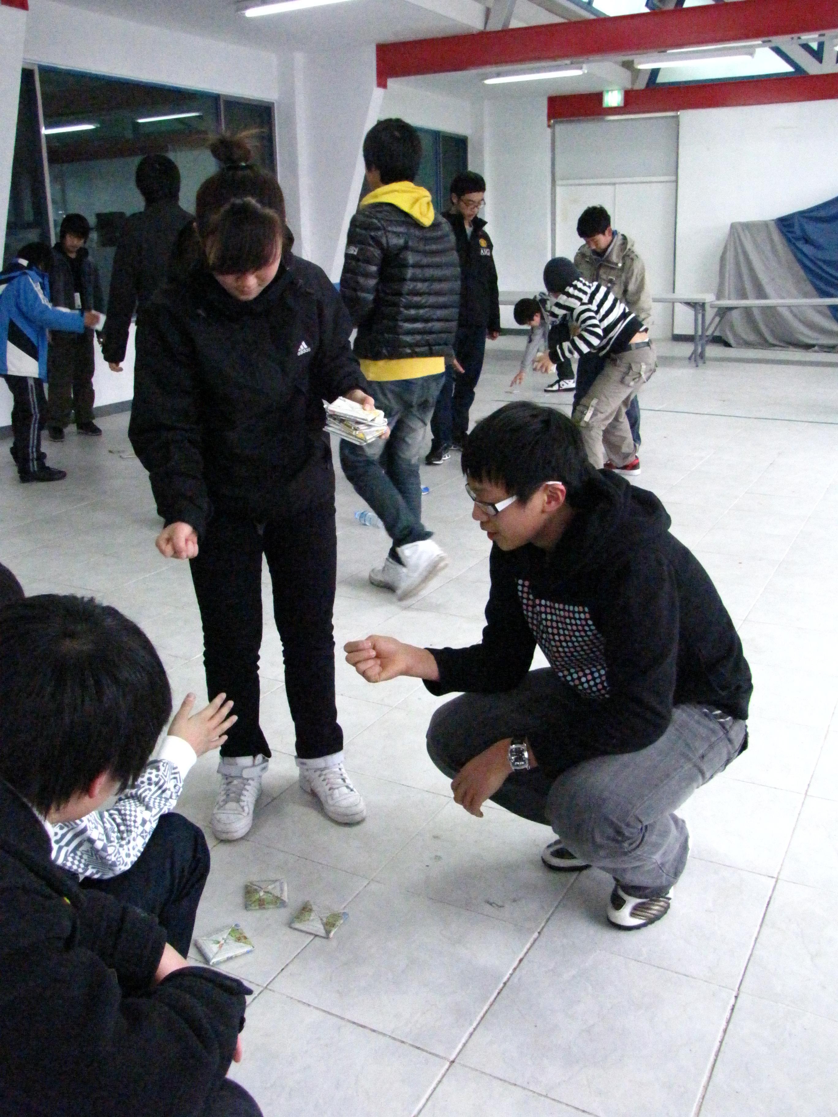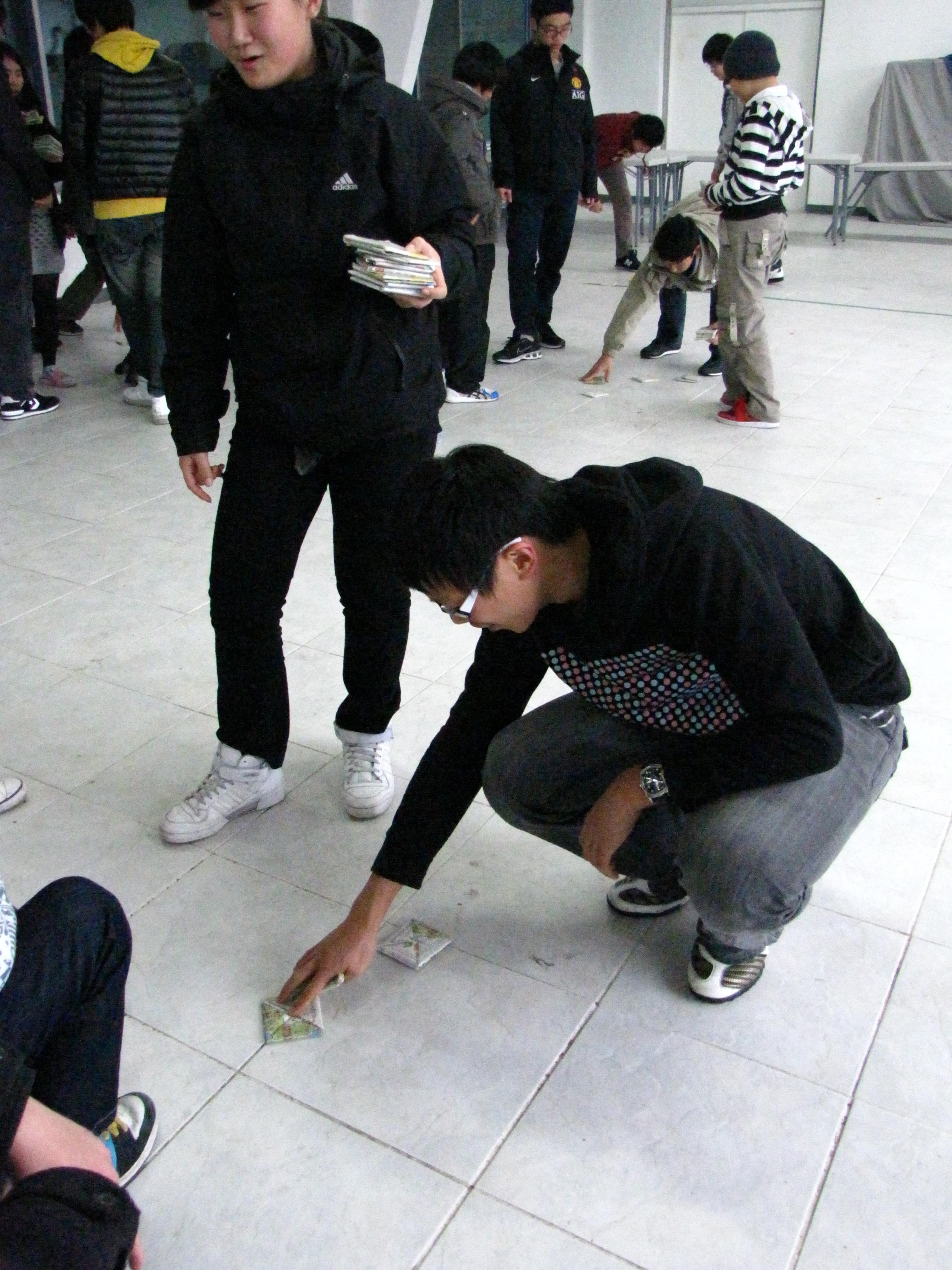 딱지치기를 즐기는 두 학생 ^^